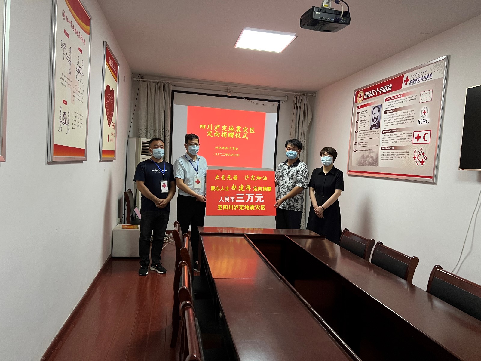9月5日,四川甘孜州泸定县发生6.8级地震,牵动了全国人民的心。一方有难,八方支援,9月7日下午,兴化市垛田街道赵建祥、王杰两位爱心人士来到当地红十字会,他们带来了6万元现金委托转赠给四川泸定,定向用于支援抗震救灾,现场举行了简单而隆重的捐赠仪式,并感谢他们心系灾区、无私奉献的精神。