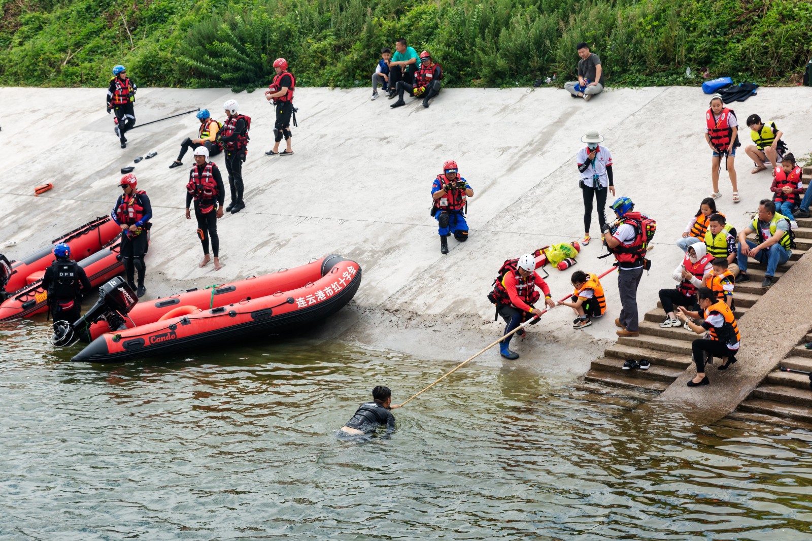 活动中,市红十字水上救援队队员向小志愿者讲解溺水的危害、如何预防溺水以及哪一些属于危险水域,同时也讲解了他人溺水的施救措施,以及器材装备的使用方法,并让救援队员演绎溺水者,让小志愿者通过救生杆和抛投绳参与救援。