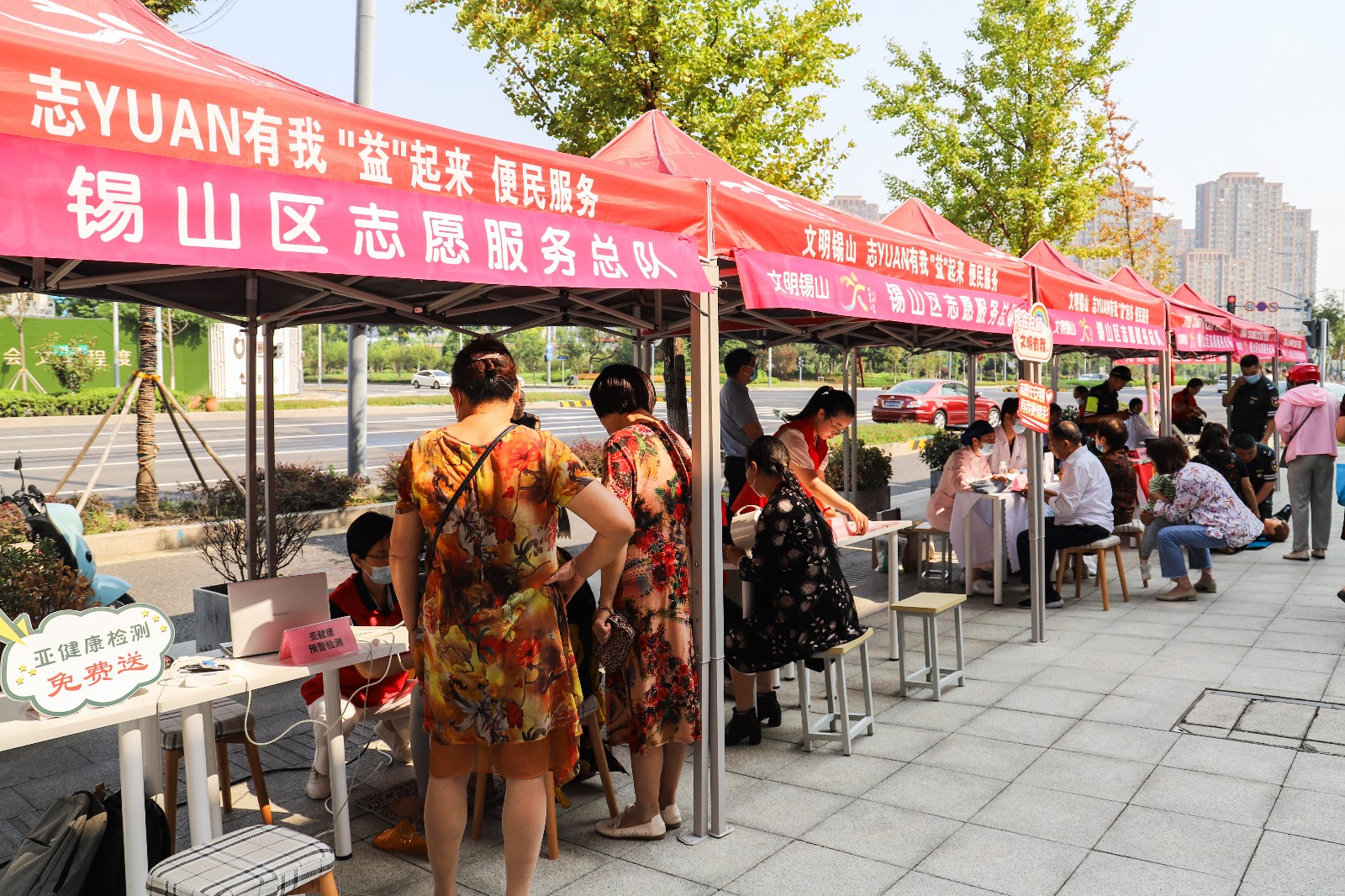 活动现场还设有亚健康预警监测、口腔义诊、测量血压、急救演练等多个便民服务点位,服务的内容丰富又实在,获得了市民群众的交口称赞。