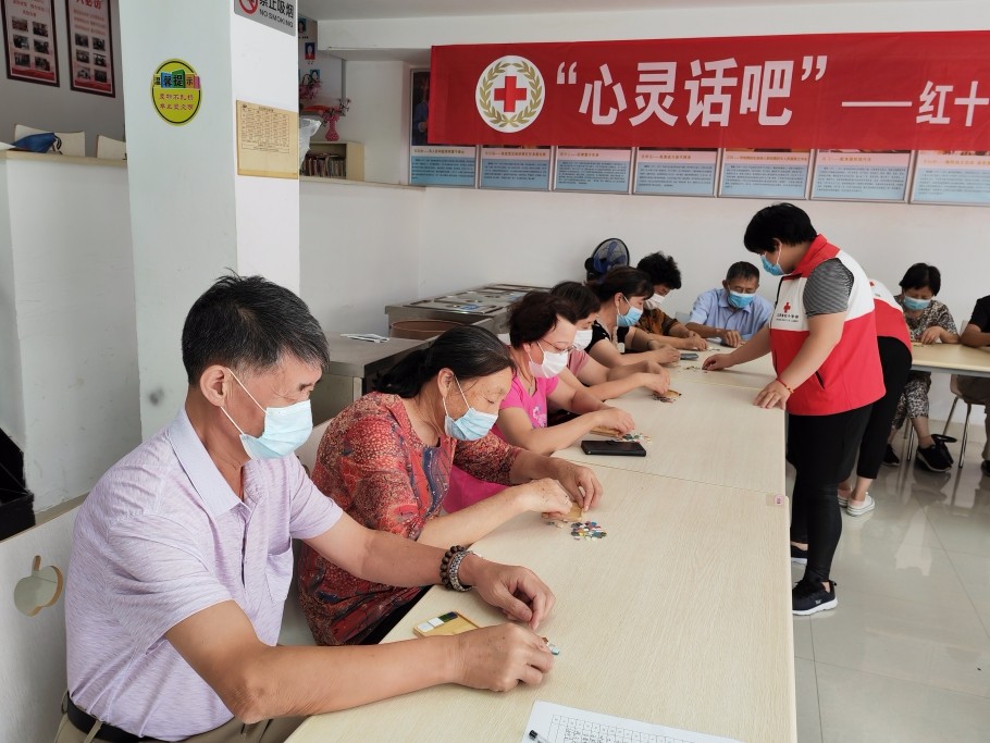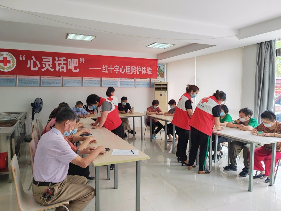 9月1日上午,君山社区红十字博爱家园养老服务志愿者团队为社区独居老人举办了“心灵话吧”红十字心理照护体验活动。