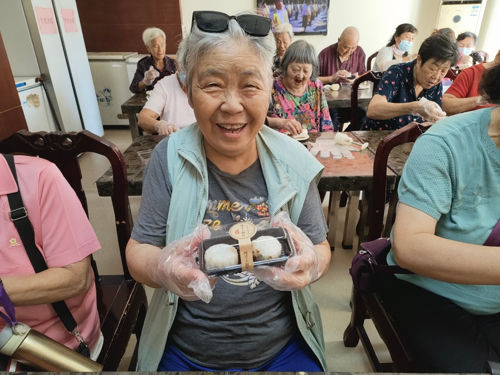 “今天很开心,制作月饼和文艺表演让我们的节日变得更有趣,我感到很幸福!”80多岁的李奶奶笑着说。