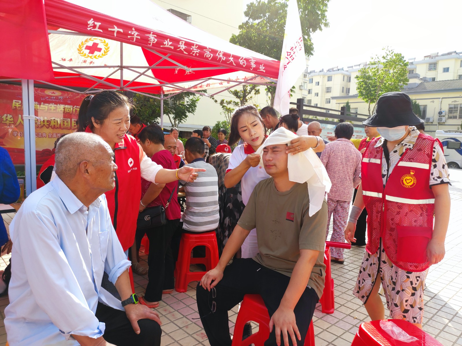 市红十字会联合市急救医疗中心,组织工作人员和红十字志愿者开展社区宣传活动,通过悬挂宣传横幅、发放宣传资料等多种形式,为100余名市民群众讲解相关急救知识。并现场示范心肺复苏急救、三角巾包扎等动作要领,让广大群众掌握胸外按压、人工呼吸、创伤救护等日常救护知识。