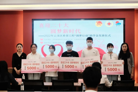 今年希望工程“圆梦行动”启动以来,云龙区红十字会联合团区委迅速响应,通过走访摸排、申报审核、现场走访等形式,最终确定帮助11位贫困学子圆大学梦。活动现场,团区委书记王雨桐、区红十字会副会长李蒙向受助学子们发放了每人5000元助学金。