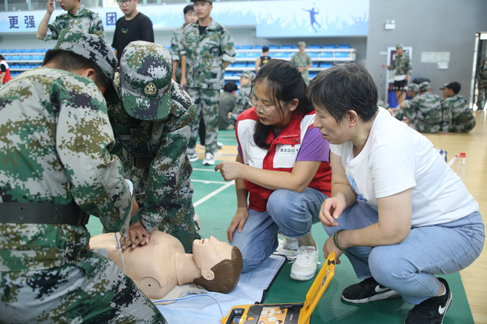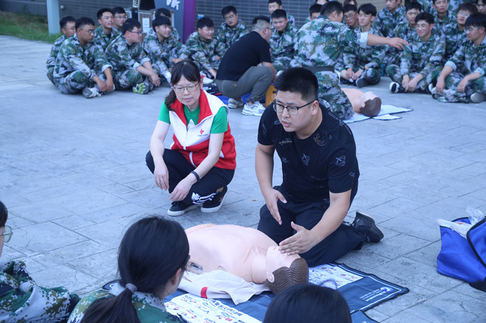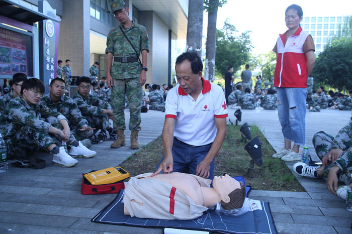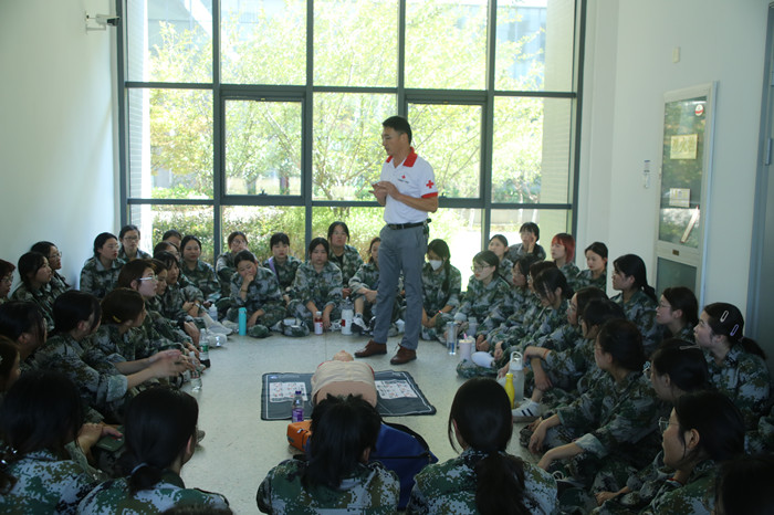 结合新生军训开展应急救护技能培训,普及自救互救技能知识,不仅能使学生认识到自救互救的重要性,还可以增强同学们的安全意识,提高应对突发事件和意外伤害的处置能力,对促进平安校园建设有重要的作用,同时也为家庭、社会的平安和谐提供更多的保障。