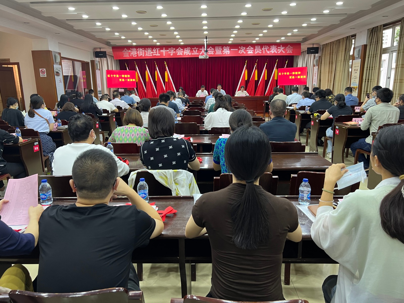 红十字事业是崇高而伟大的事业,为贯彻落实《中华人民共和国红十字会法》,大力弘扬“人道、博爱、奉献”的红十字精神,不断提升基层红十字组织工作水平,9月14日上午,张家港市金港街道办事处召开红十字会成立大会暨第一次会员代表大会。市红十字会常务副会长丁浩、秘书长黄莺,金港街道党工委副书记、办事处主任杜锁军,办事处副主任单松萍出席会议,街道相关部门、各村(社区)、部分企业与学校会员代表参加会议。