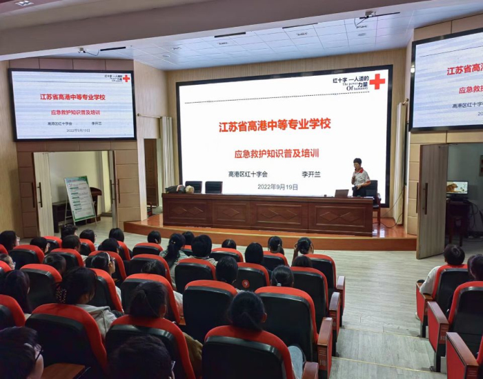 9月19日下午,高港区红十字会在江苏省高港中等专业学校开展普及救护培训。在江苏省高港中等专业学校的报告厅内,200多名高一新生接受红十字应急救护培训,高港区红十字会培训师资李开兰精心准备了面对学生群体的培训教案,图文并茂的讲解了心肺复苏、创伤包扎等急救知识,并与受训学生展开问答、实操方面的互动。受训学生表示,这样的培训非常有意义,所学的知识受用一生。