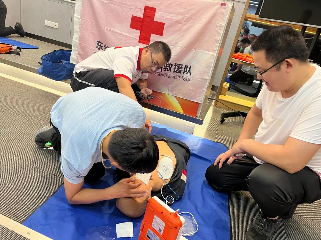 东台市红十字会为增强广大企业员工自救互救技能,提高企业应对突发事件的能力。近日,在领胜城科技(江苏)有限公司举行红十字应急救护培训进企业活动。开展救护员培训,近40名学员参加了此次活动,培训后理论+操作考试,合格的学员发放救护员证。培训现场,红十字应急救护讲师系统地讲解了红十字运动起源、救护新概念、心肺复苏及AED使用,创伤救护四项基本知识以及常见急救现场处理要点和技巧,手把手指导大家进行操作练习。活动模拟病人急救现场,在突发情况下对病人进行急救演示,让参训者进一步掌握救护知识,提高应急能力。