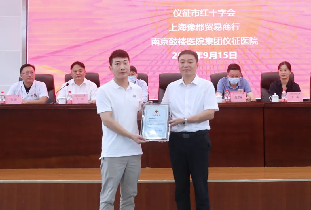 为助力健康中国,守护中国“心”,9月15日上午,由仪征市红十字会主办的“心希望关爱基金”项目启动暨救助项目合作签约仪式,在南京鼓楼医院集团仪征医院举行。仪征市政府副市长、红十字会会长殷仕宝参加活动,并为上海豫郡贸易商行代表颁发捐赠荣誉证书。
