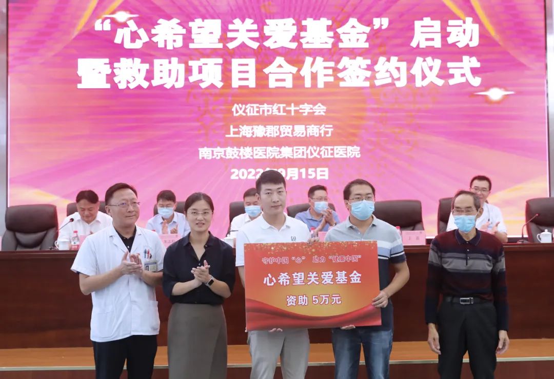 活动现场,南京鼓楼医院集团仪征医院院长周庆发表致辞,上海豫郡贸易商行代表戴家声发表爱心感言。仪征市红十字会、上海豫郡贸易商行、南京鼓楼医院集团仪征医院三方共同签署“心希望关爱基金”救助项目合作协议,捐赠100万元成立“心希望关爱基金”救助项目,致力通过“公益资助+医院减免+医保报销+家庭自付”的公益模式,将优质的医疗技术服务提供给结构性心脏病患者,减轻患者家庭经济负担,助力兜牢基本民生保障底线。