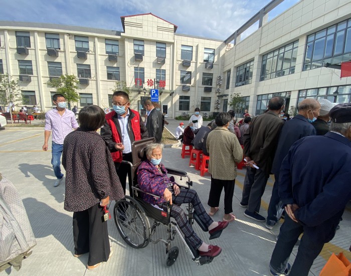 为进一步推进“健康江苏服务百姓”大型义诊活动,9月23日上午,胡庄镇胡庄医院泰州市人民医院专家开展医疗下乡活动,胡庄社区红十字博爱家园志愿者们踊跃参与指引服务。医疗队一下车就受到早早等候在门口的胡庄医院医务人员、志愿者及群众的热烈欢迎。专家们不顾歇息,立即分组投入到工作中,指导志愿者们配合做好服务。