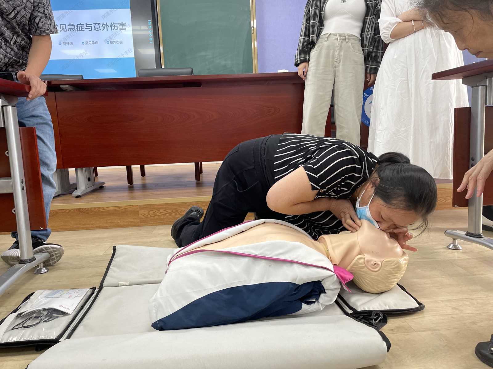 此外,培训师还对气道异物梗阻急救、止血与包扎、意外创伤救护的知识开展了普及型培训。
