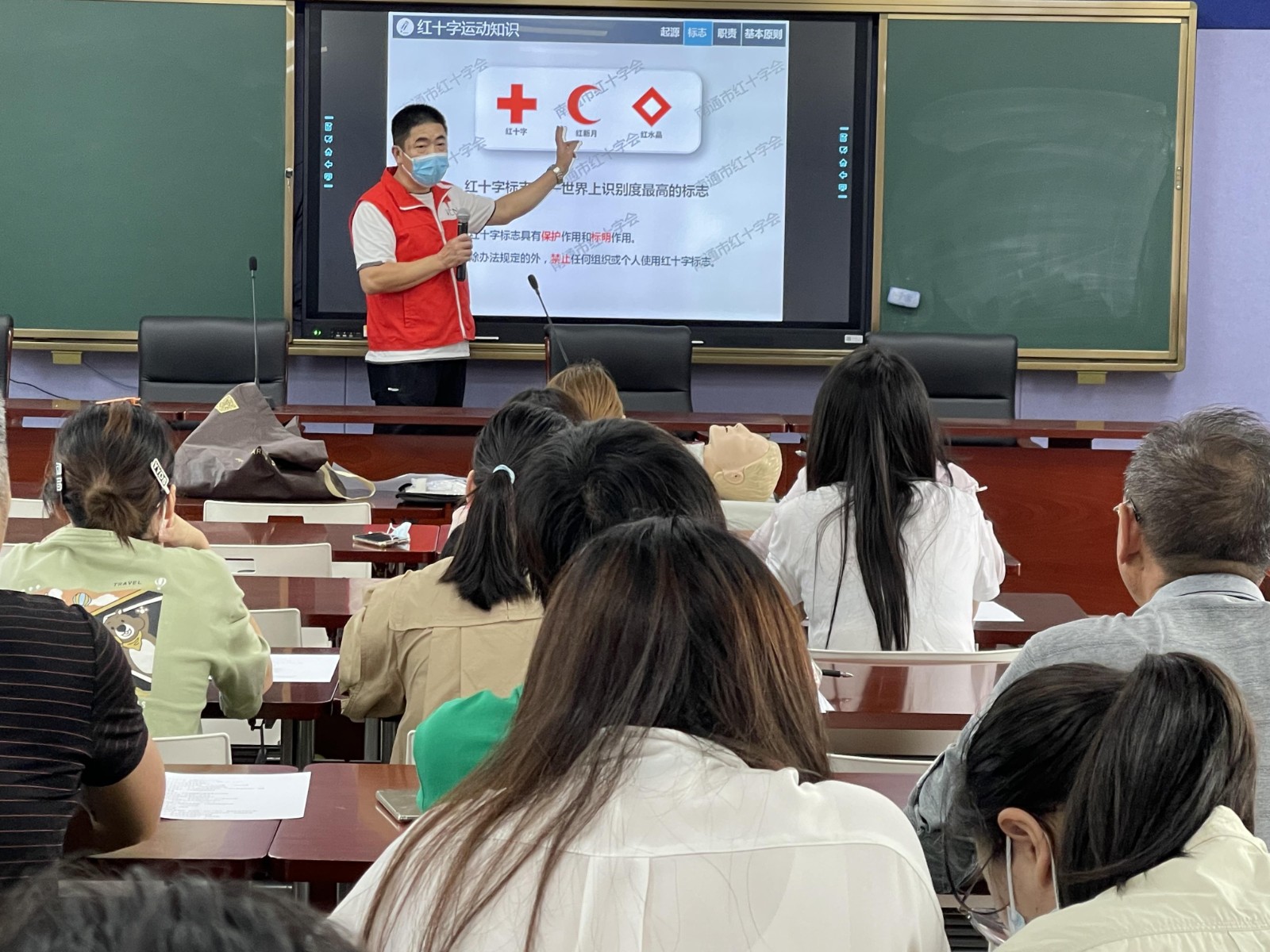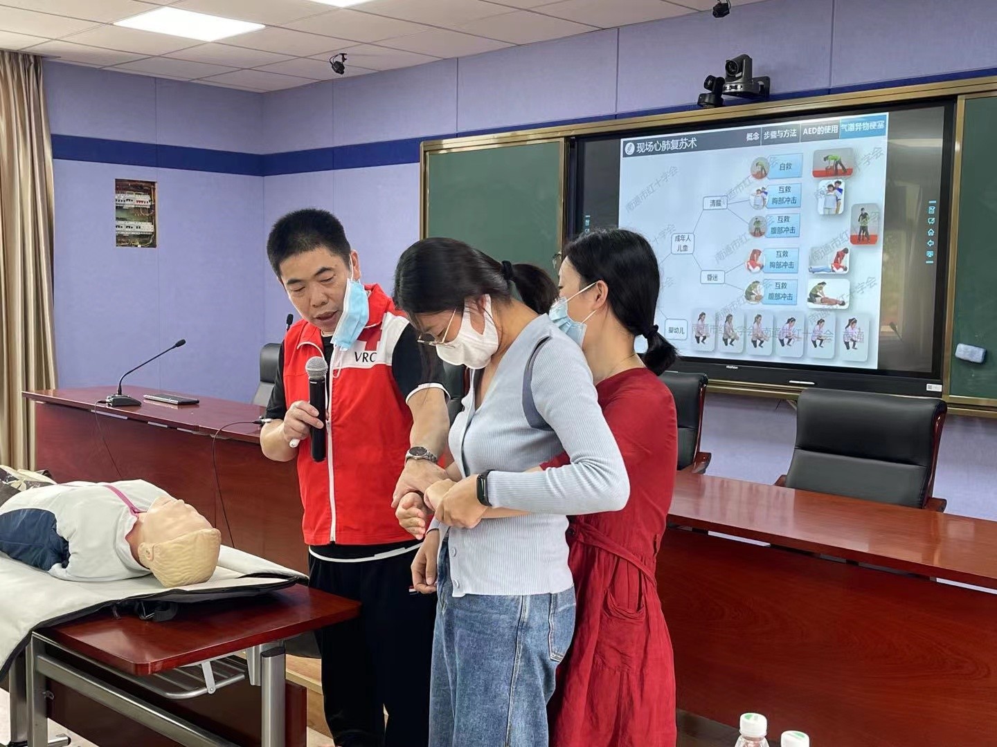 为贯彻落实中国红十字会总会联合教育部印发《关于进一步推进学校应急救护工作的通知》精神,增强教师面对突发事件和意外伤害的紧急救护意识,提升教师处理突发事件和自救互救的能力,9月22日、23日下午,鹤涛小学特邀崇川区红十字会救护培训师为全体教职工开展“校园守护 ”应急救护培训活动。