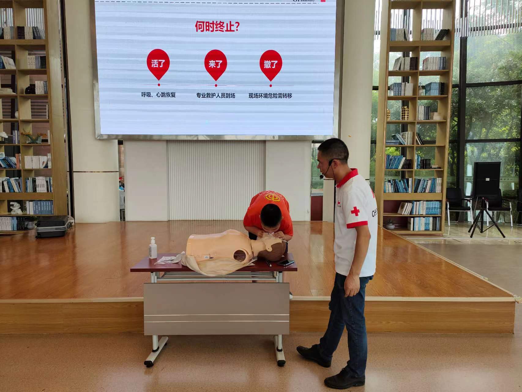 程医生讲述了心源性猝死和黄金4分钟的概念,阐述了“人人学急救、急救为人人”的红十字人道救护理念。在实际操作环节,他讲解示范了心肺复苏流程,一边演示心脏按压的步骤,一边讲解操作方法和动作技巧,指导青少年学生进行实际操作,并逐一纠正施救过程中的不当之处。