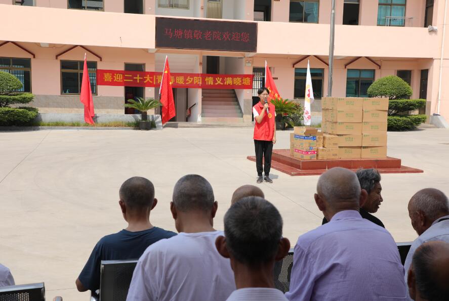 2022年9月,马塘中学政教处、团委、红十字会、马塘夕阳红爱心助学志愿服务队、江苏三润服装集团股份有限公司组织学生前往马塘敬老院慰问老人,提前为他们送去节日的祝福。