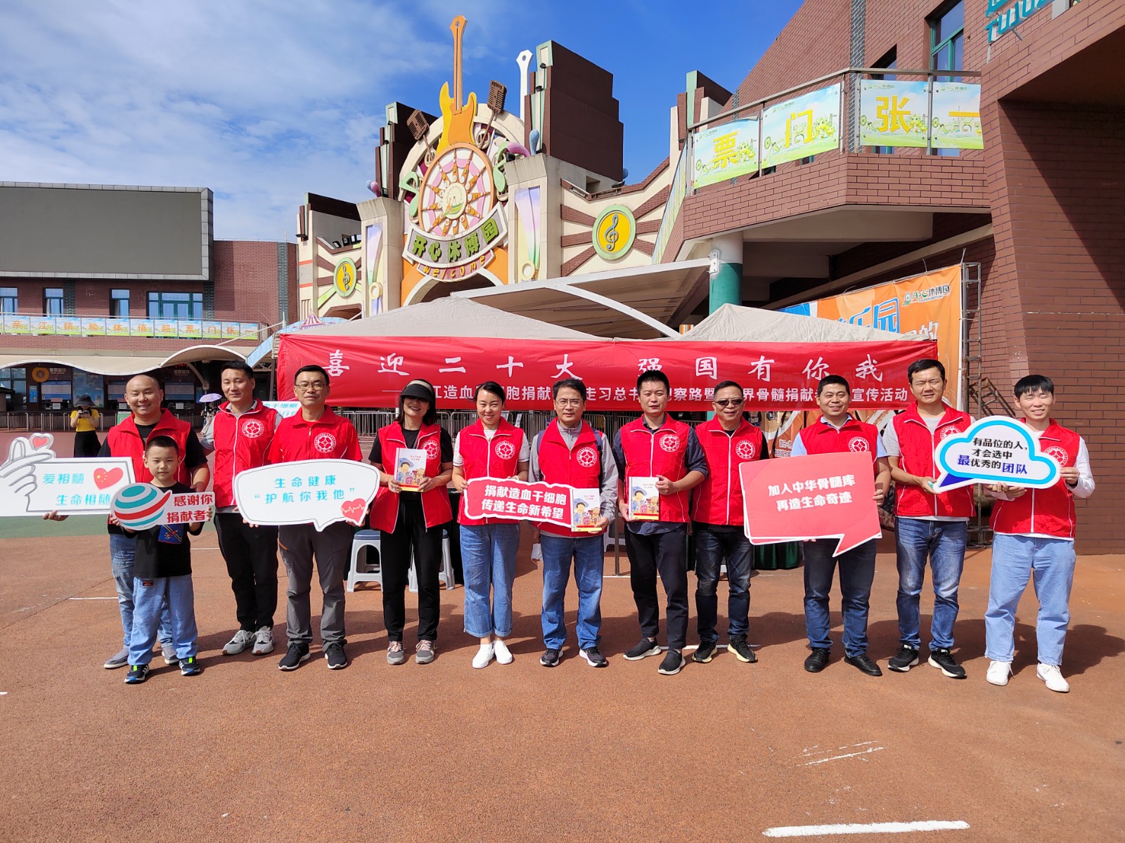 参观完毕,在开心休博园入口处,身穿红色马甲的造血干细胞捐献者开展了造血干细胞捐献宣传活动,通过发放宣传资料、现场讲解等方式,向市民游客介绍造血干细胞捐献相关知识。造血干细胞捐献者们用自己的亲身经历告诉大家,捐献造血干细胞无损健康,鼓励更多的爱心人士加入到造血干细胞捐献志愿者的行列。活动现场氛围活跃,路过的市民游客纷纷驻足关注,咨询了解相关情况。