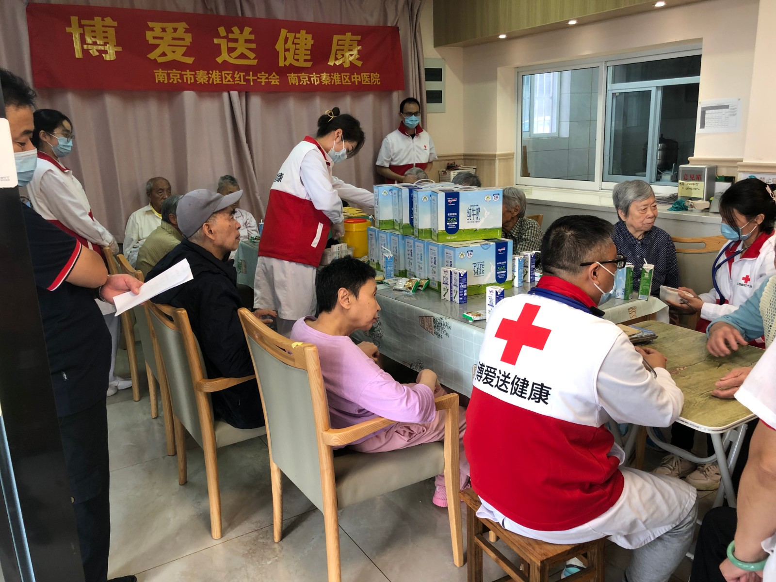 在夫子庙敬老院,区红十字会组织南京红十字医院、秦淮中医院的医护人员为老人们义务进行测量血压、空腔检查、中医号脉等诊断检查,还向老人宣讲预防保健知识,并详细解答关于糖尿病、腰腿疼痛、心血管疾病等方面的健康咨询,用实际行动将浓浓爱心送给敬老院的老人们。