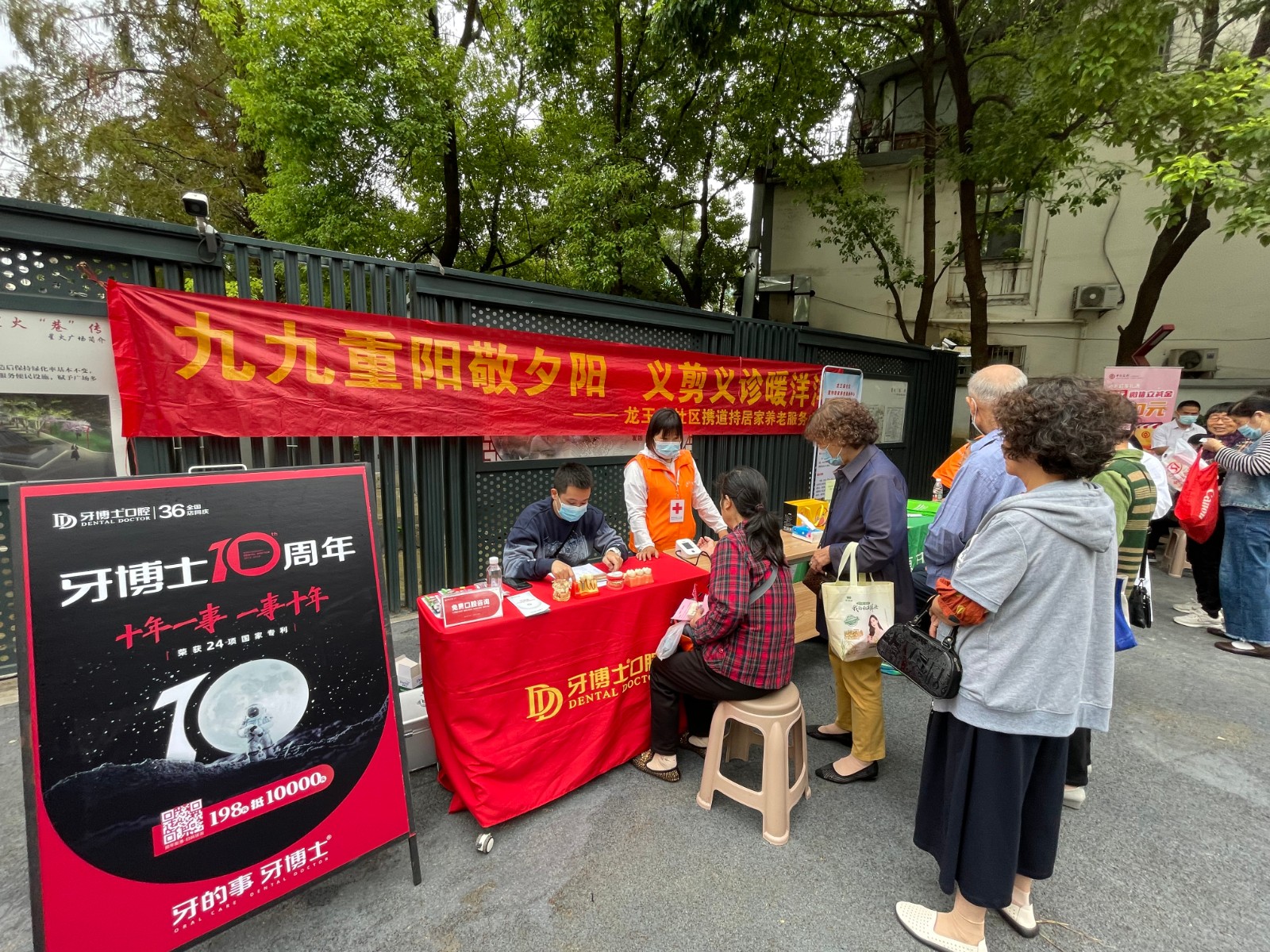 2022年9月28日,秦淮区龙王庙社区星火广场迎来了一群老年人,他们早早的排上了队,等待为他们精心准备的义诊义剪活动,本次志愿活动由洪武路街道龙王庙社区携手道持居家养老服务联合牙博士口腔、惠耳听力、洪武路街道红十字会共同举办。