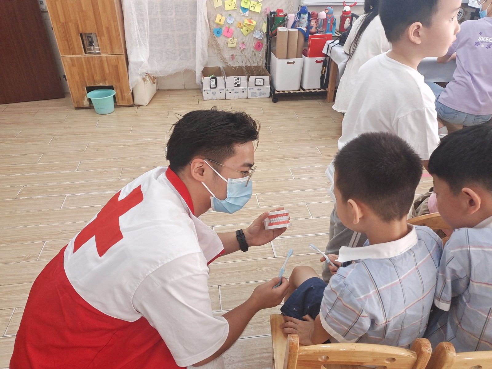 活动现场,红十字志愿者还手把手指导学生刷牙,纠正孩子们平时生活中错误的刷牙方式,让他们在愉悦欢快的氛围中掌握正确的刷牙方法。