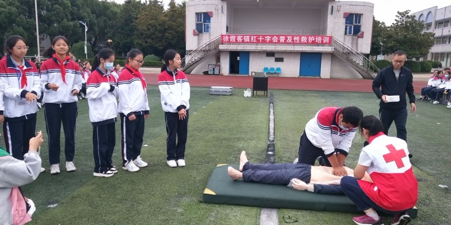 为进一步普及应急救护知识,提高学生的安全防范意识和自救互救能力,9月26日下午,徐霞客镇红十字会在峭岐中学校区操场举行红十字应急救护培训。