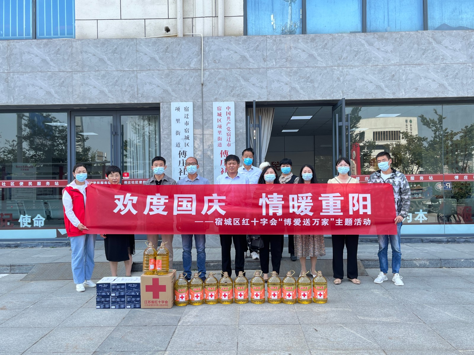 为庆祝中华人民共和国成立73周年,迎接党的二十大胜利召开,进一步推动“强国复兴有我”群众性主题宣传教育活动和新时代文明实践,切实营造热烈喜庆、欢乐祥和的节日氛围,宿城区红十字会组织开展“欢度国庆 情暖重阳”为主题的博爱送万家活动,为7个社区近百名困难群众送去节日慰问!