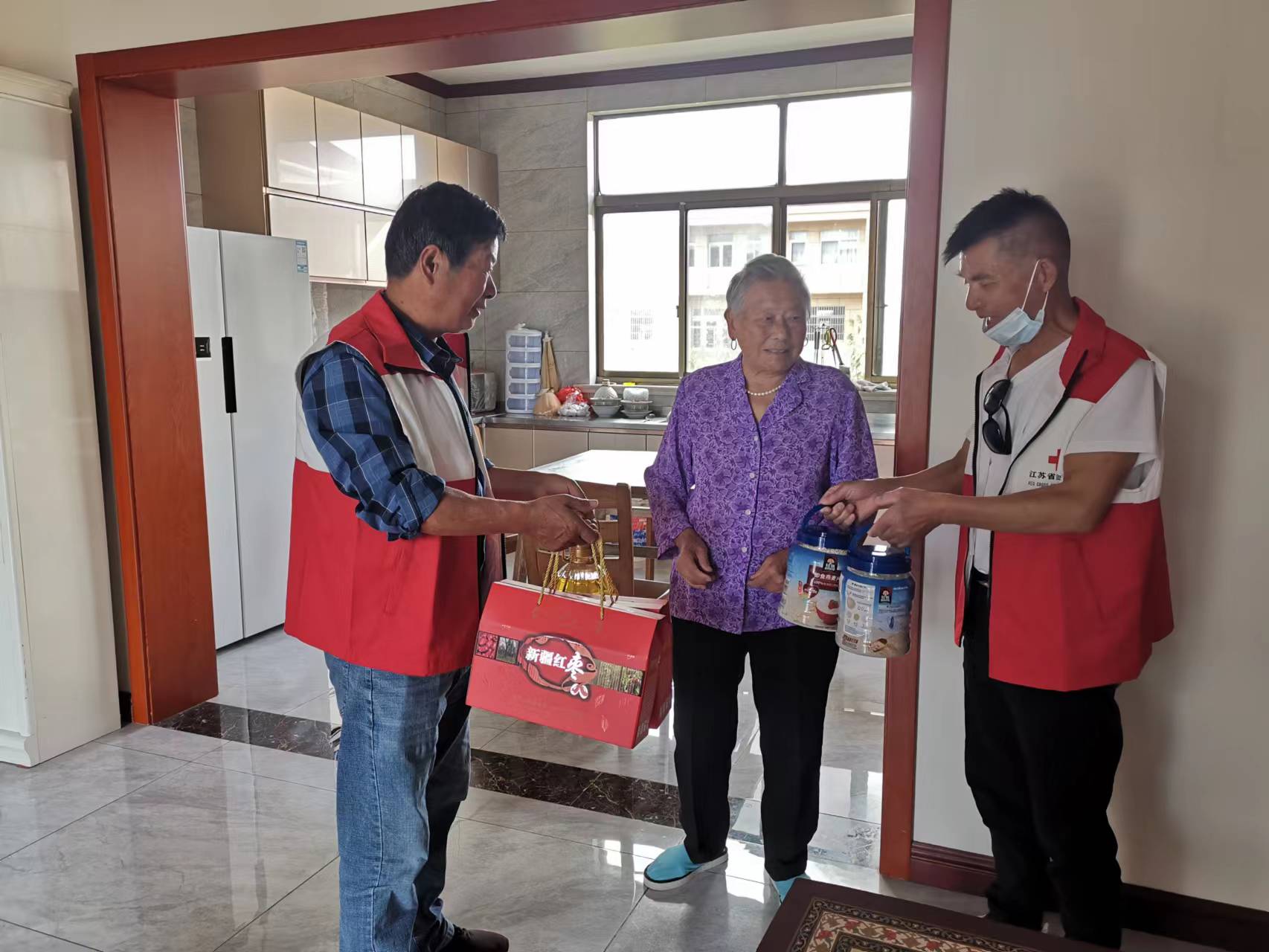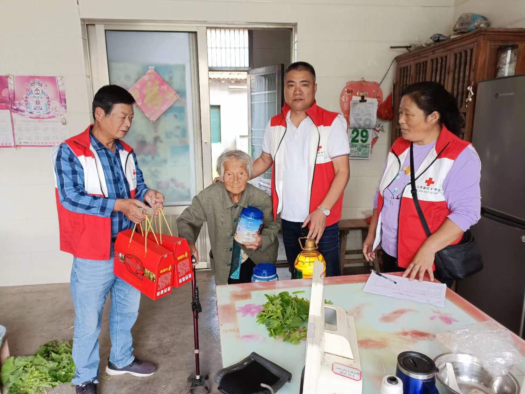 志愿者相继看望了村里的百岁老人和几位家庭困难的老人。了解了老人的身体状况、家庭生活情况、倾听他们的心声,同时给他们送去了慰问品,致以节日的问候和美好的祝福。