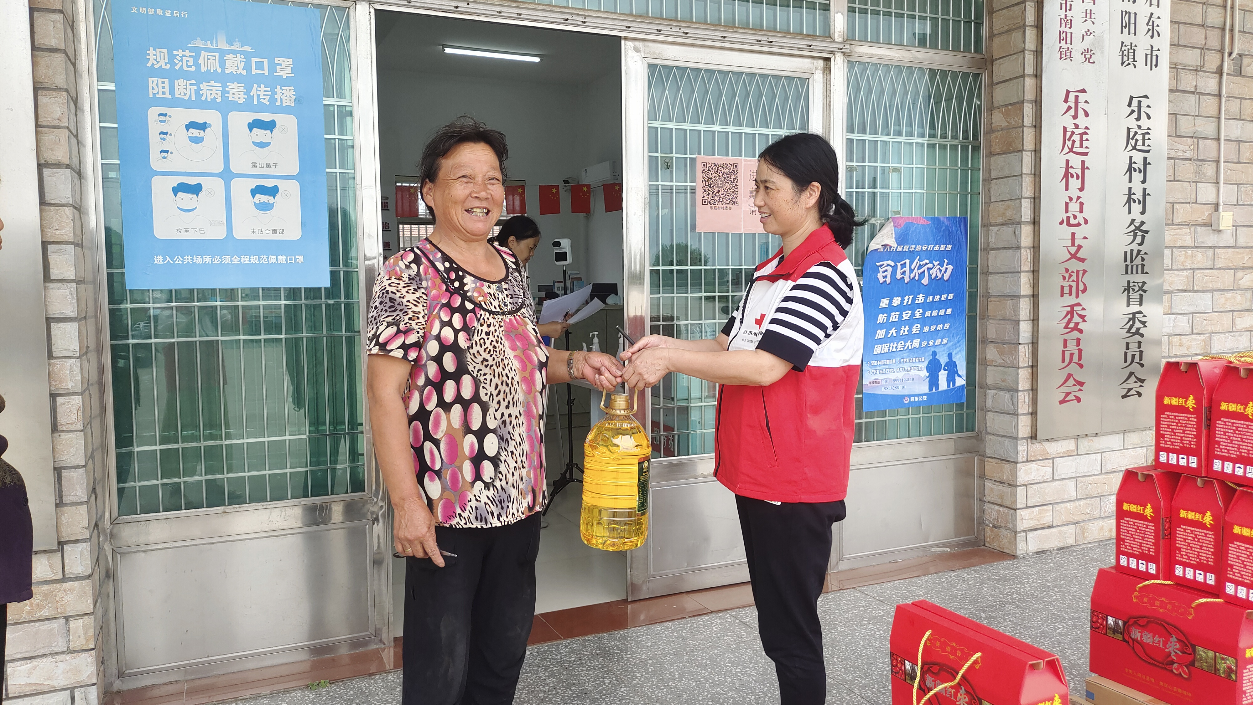 活动中,乐庭村博爱家园志愿者给90周岁以上老人和失独家庭老人送去了慰问物品,并与老人们亲切交谈,叮嘱老人们要保重身体,并为他们送去红枣、麦片、油等慰问品。