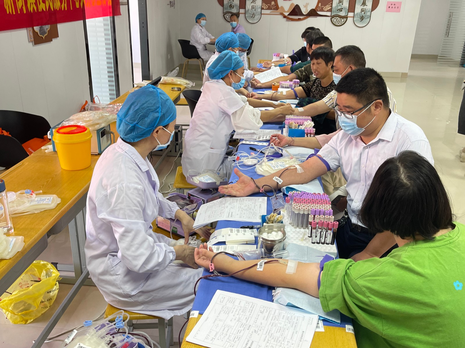 此次活动我中心鼓励党员干部带头,全体机关干部积极参加,广大群众自发报名。活动现场井然有序,镇红十字会志愿者引导群众签到、扫场所码、测量体温、提醒佩戴口罩,帮助有困难的群众按照流程登记、体检、采血,医务人员有条不紊。部分志愿者向前来献血的群众讲解科学献血对身体机能健康发展的好处以及献血后注意事项,并准备好姜茶为献血人员缓解献血后不适症状。