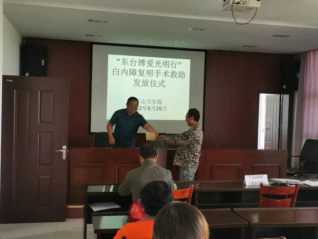 9月29和9月30日下午,市红十字会分别在广山卫生院、光正眼科医院举行迎国庆“东台博爱光明行”助医款发放活动,市红会秘书长何斌参加发放,此次活动共帮扶30名白内障手术患者。10-11月份市红十字会将继续开展此项助医款发放活动。