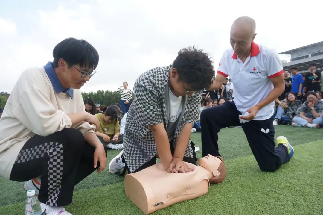 培训现场,市红十字会救护培训老师强调了“先救命,后治伤”“先安全,再救援”的原则,就心肺复苏、气道异物梗阻等方面进行了示范讲解,尤其对如何在“黄金4分钟”内有效地进行心肺复苏术作了详细的技巧讲解和流程演练,教会学生在紧急情况下如何有效地开展自救互救。