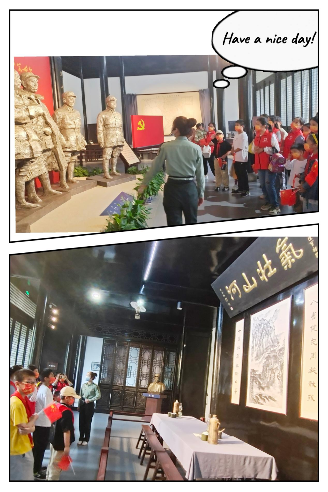 新四军重建军部旧址是中国人民抗战胜的见证,是盐阜大地红色基因的重要代表。在追忆那些艰苦岁月和付出宝贵生命的人民英雄中,小志愿者仇子萱说“ 热血铸丰碑,英魂垂青史。我们要秉承先烈遗志,在爱国主义的伟大旗帜下立志、立德、立言、立行,努力成为对社会有所贡献的新时代青少年!”