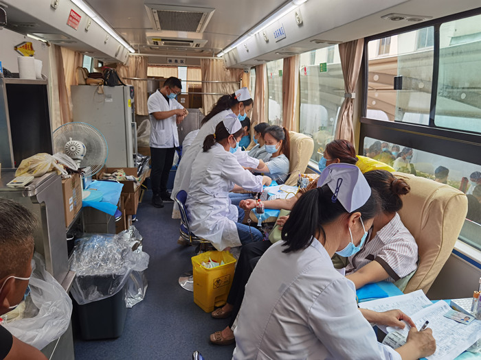献血现场,参与无偿献血的职工们在医务人员的引导下,有序排队、填写表格、测量血压、体检化验,经过严格筛选合格后,挽袖献血。活动现场,“中国好人”“献血达人”杨小飞引导大家登记表格,宣传无偿献血和造血干细胞捐献。