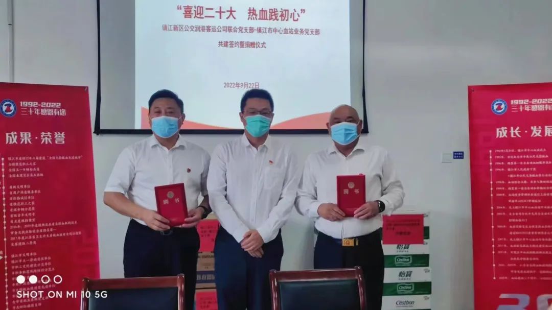 市中心血站党总支部书记、站长周晨洁和镇江新区公交润港联合党支部书记曹小飞首先各自介绍了本单位、部门业务开展情况和党建工作情况。随后,双方现场签署了党建共建协议书。