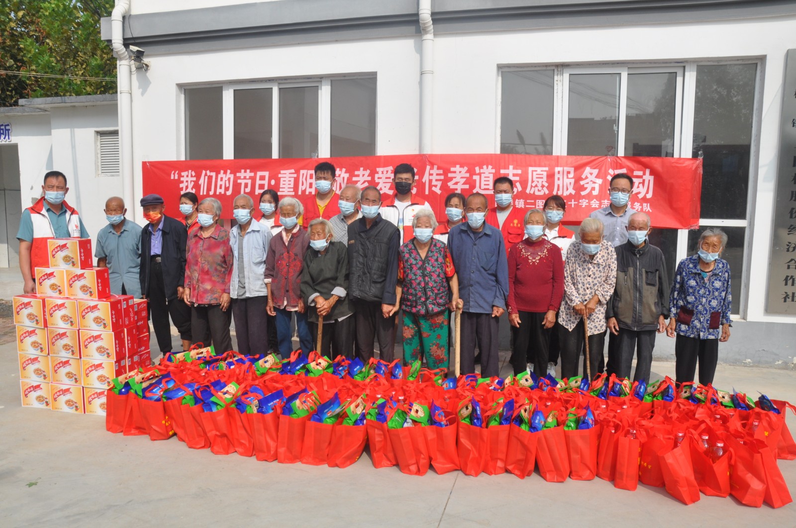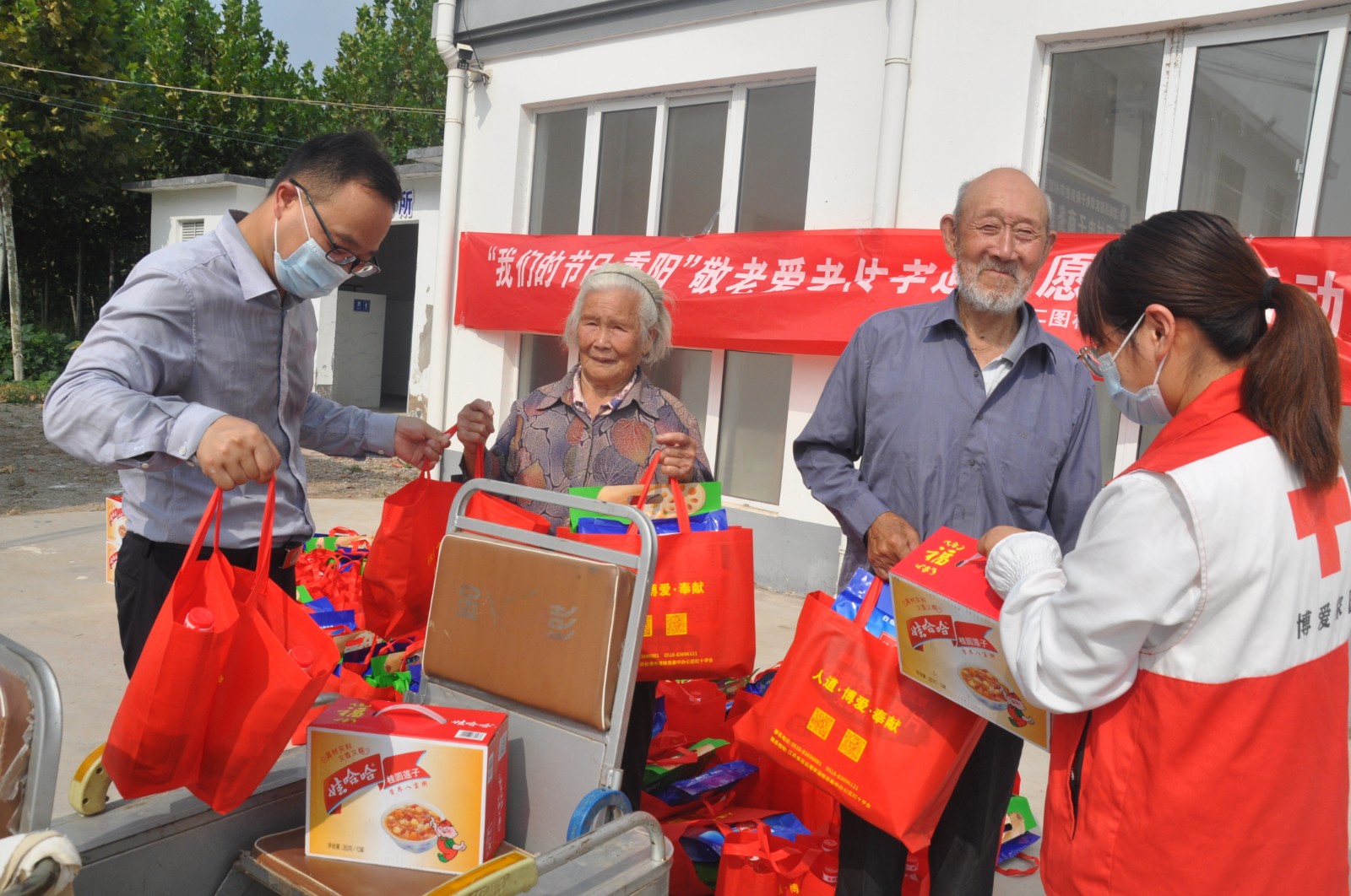 现场,村红十字志愿服务队的队员们在镇红十字会工作人员的指导下,为该村55位年满80周岁及以上老人送上八宝粥、食用油油、麦片、藕粉等慰问品,迎接即将到来的重阳节。