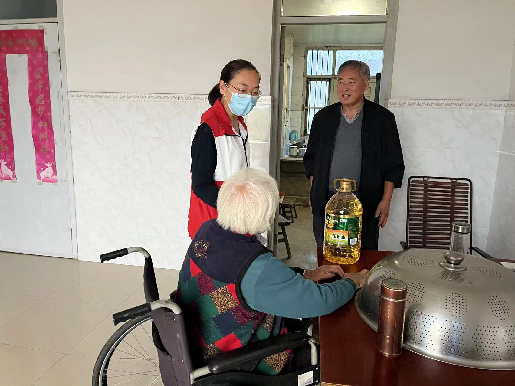 在大兴镇村党总支书记施丹丹同志带领下和村干部一起为他们送上由红十字会提供的重阳节慰问品,并且祝福他们永远身体健康。