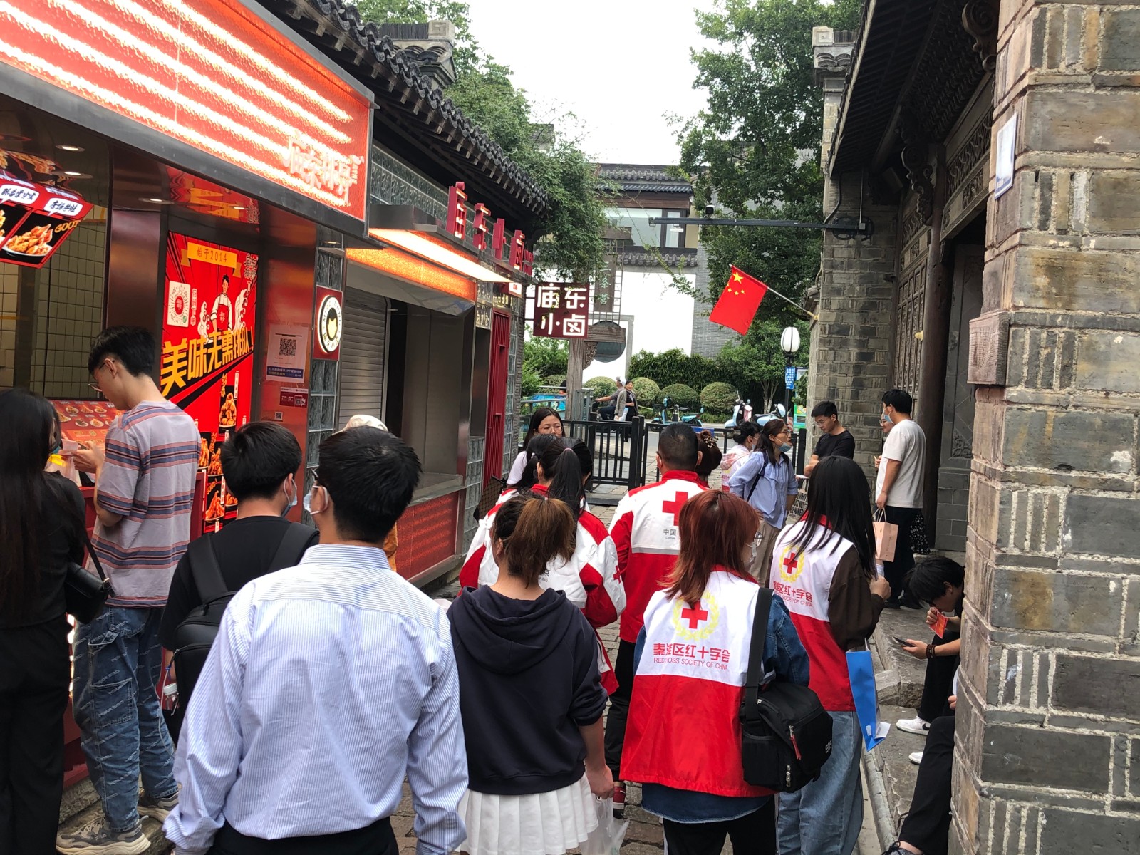 在刚刚过去的“十一”小长假,秦淮区红十字会组织20余名救援队队员及志愿者,先后来到老门东、夫子庙、小西湖、大报恩寺景区开展保障景区游客安全志愿服务。区红会充分发挥景区红十字救护站作用,为其配备了急救医用箱、急救包、防疫物品等以使在节日期间能及时有序,高效应对突发事件。同时向游客普及应急救护知识,现场手把手指导游客如何操作,吸引众多游客驻足观看学习,受到广大游客一致好评。协助查验核酸码,维持秩序,宣传防疫知识,发放无偿献血宣传资料,普及无偿献血知识和政策等。