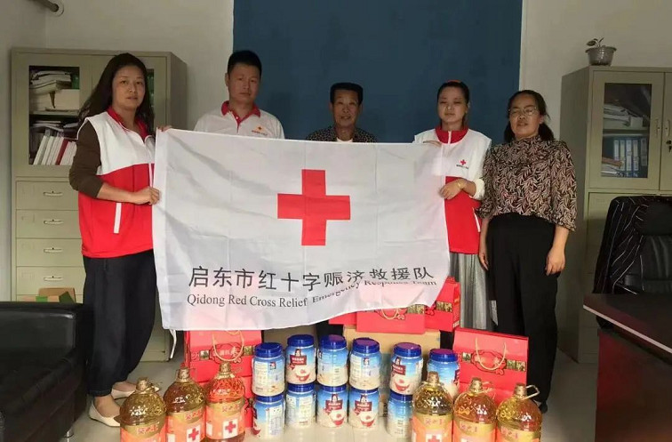 国庆重阳喜相逢,温暖关爱不停步。启东市红十字会本次重阳节助老慰问活动,共准备了255桶食用油、510盒红枣、510罐麦片,共计价值近5万元,分发给全市16个博爱家园和救援队,主要用于慰问全市红十字博爱家园的老年低保户、五保户、建档立卡户、困难老党员、残疾人等,预计将惠及近500户家庭。