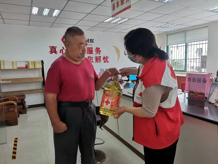 在重阳节来临之际,崇川区红十字会与世伦桥社区博爱家园举办“重阳节博爱送万家”活动,以生活较为困难的老人作为此次活动的关爱对象,送上了慰问品。