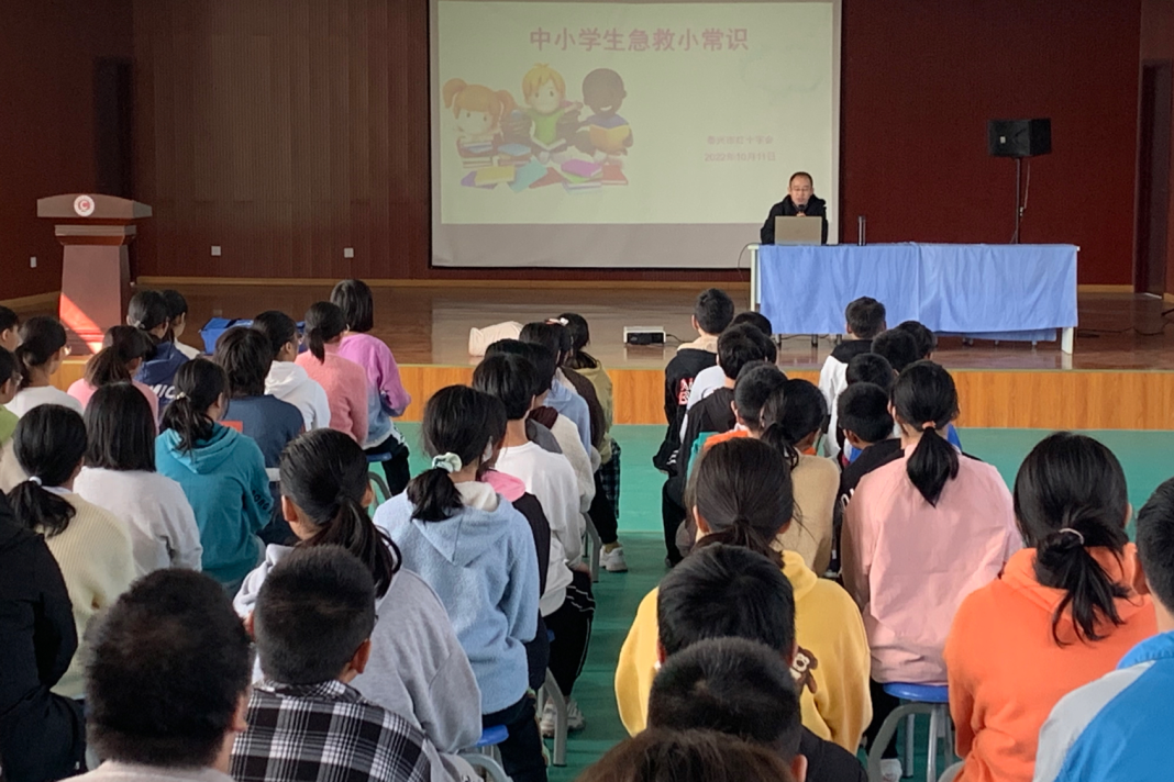 为普及应急救护知识,引导学生在特殊情况下掌握自救、互救的方法,提高应对灾害和突发事件的自救互救能力,10月11日上午9点,泰兴市红十字会组织开展应急救护公益培训走进常周初级中学,对初一、初二所有师生进行培训。