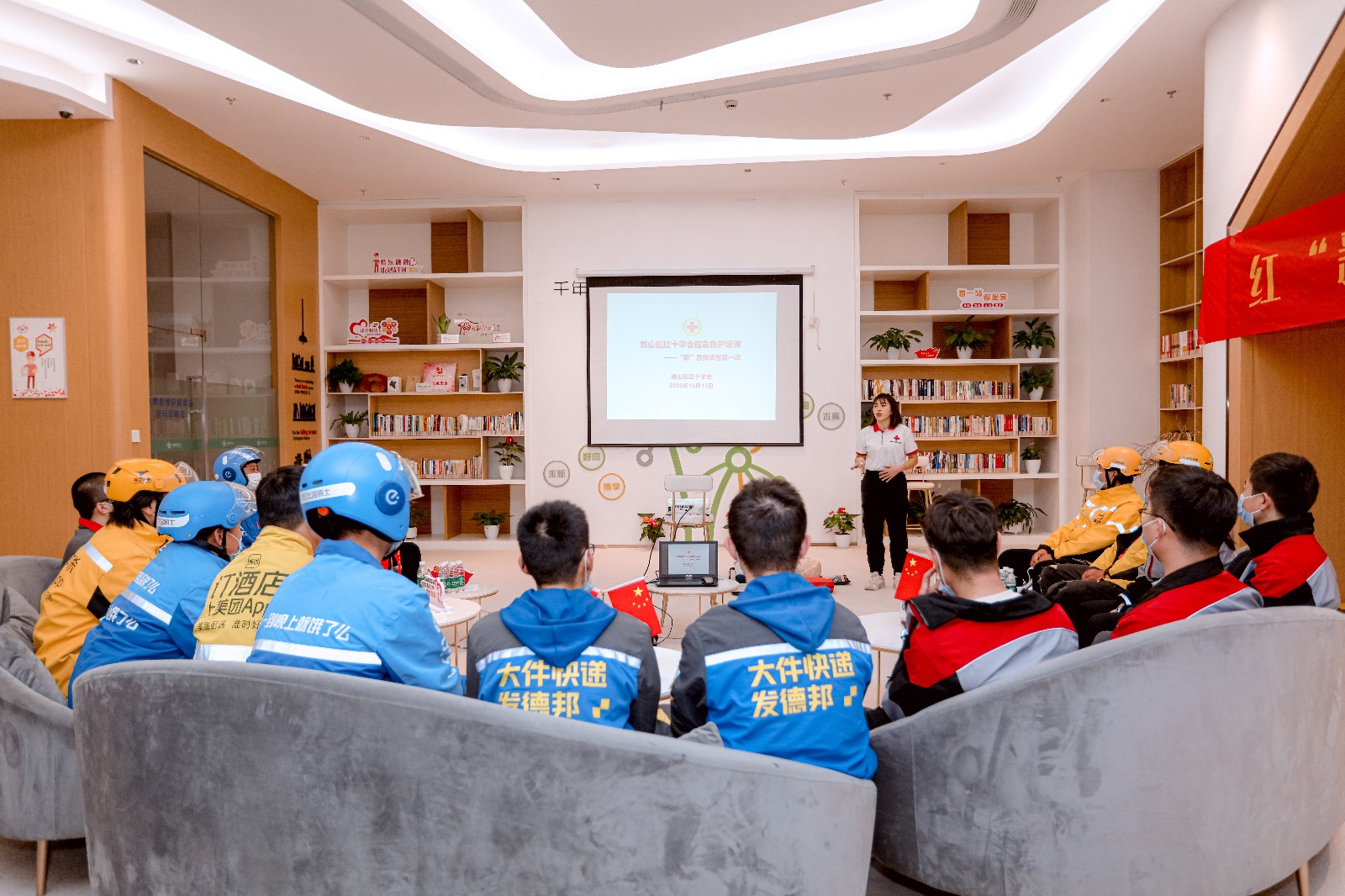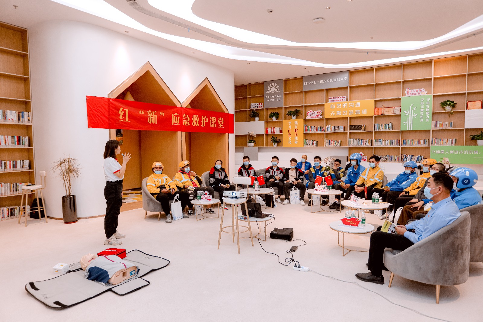 活动后,锡山区新业态新就业群体应急救护课堂第一课开讲。锡山区红十字会组织救护师资为现场快递员、外卖员、网约车司机带来了现场急救技能和相关知识。
