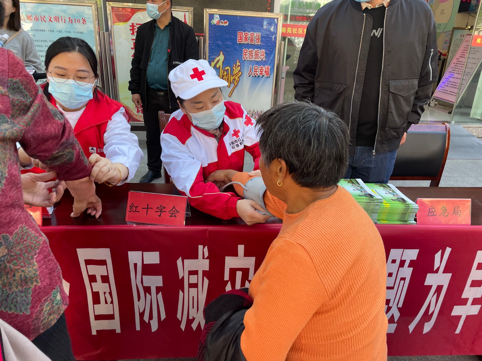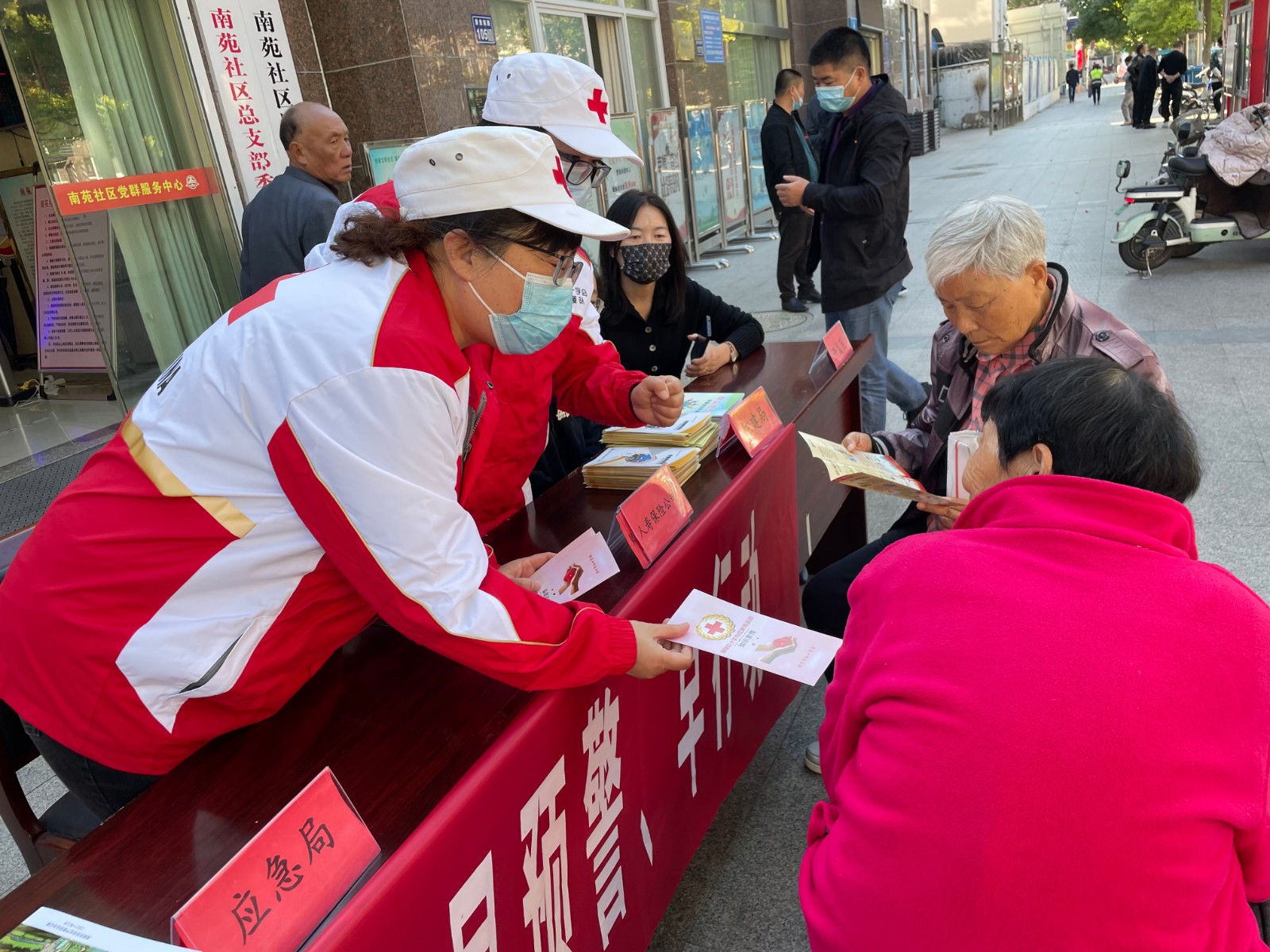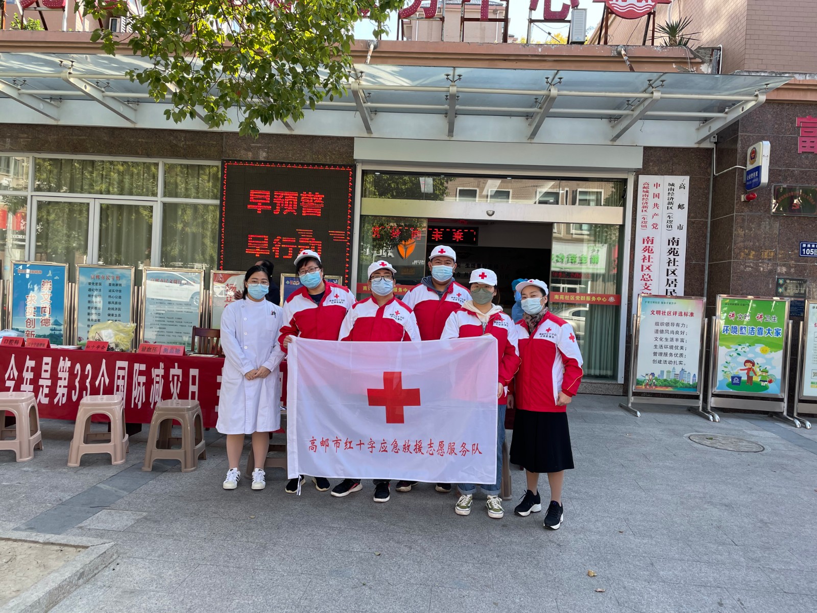 今年10月13日是第33个国际减灾日,主题是“早预警、早行动”,旨在通过建立健全政府主导、社会参与、多方协同的自然灾害早期预警与应急响应行动机制,提高全社会的灾害风险防范应对能力。国际减灾日当天,高邮市红十字应急救援队前往南苑社区、九园社区开展防灾减灾宣传活动。