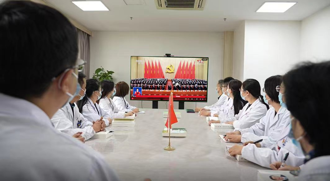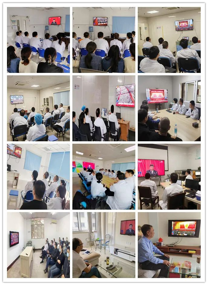 我院党政领导班子成员在行政七楼小会议室集中收看;医院十个党支部分别以集中学习和分散自学相结合的方式组织观看大会直播盛况。