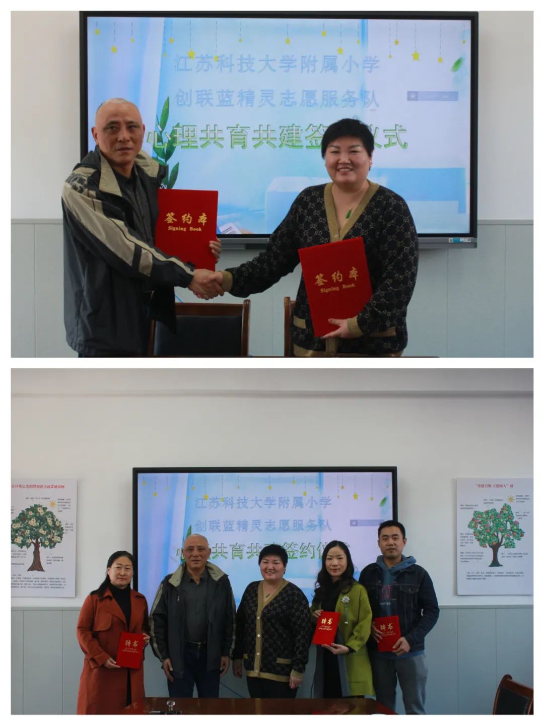 为提升青少年心理健康素养,促进青少年全面健康成长,10月19日下午,镇江市红十字创联蓝精灵志愿服务队走进江科大附属小学,举行“心理共育共建”签约仪式。服务队负责人许紫琳、成员戴丹、心理咨询老师于海凤、张岳、天娜,江科大附小党支部书记祈俊、副校长庄静、朱新琴老师共同参加了签约仪式。