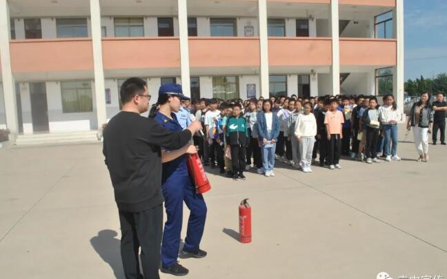 到达操场清点确认人数后,我校聘请的消防网格长肖翠向全体师生介绍了灭火器的使用方法,并提醒大家,“生命至上,安全第一”“安全没有旁观者”,只有共同参与,警钟长鸣,才能防患于未然!经过教学,在掌握了灭火器的使用方法和步骤之后,学生代表上前进行实操演习。在消防网格长肖翠的指导下,同学们完美完成了灭火操作,成功扑灭了铁桶中的火苗。