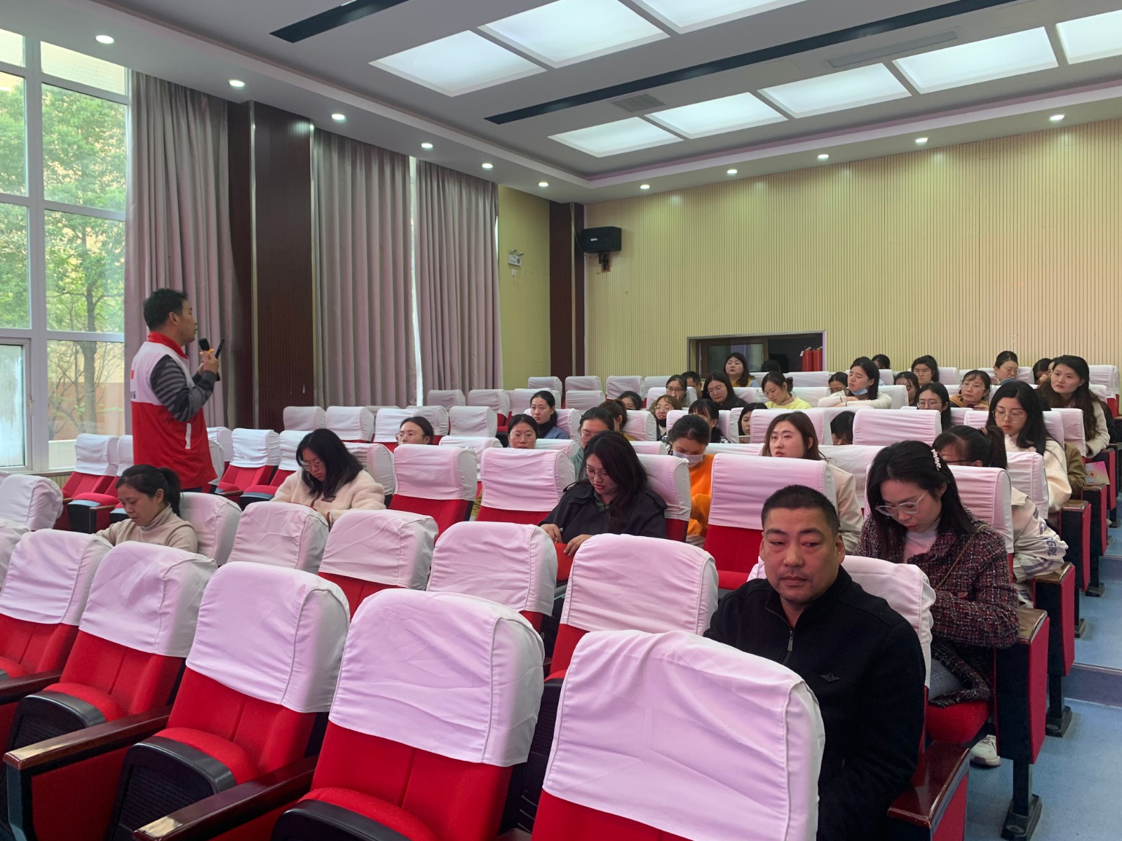 10月21日,淮安市清江浦区红十字会走进清河实验小学为该校全体班主任开展初级救护员培训。清江浦区红十字会初级救护员培训讲师曹玲玲、杨森老师开展教学。