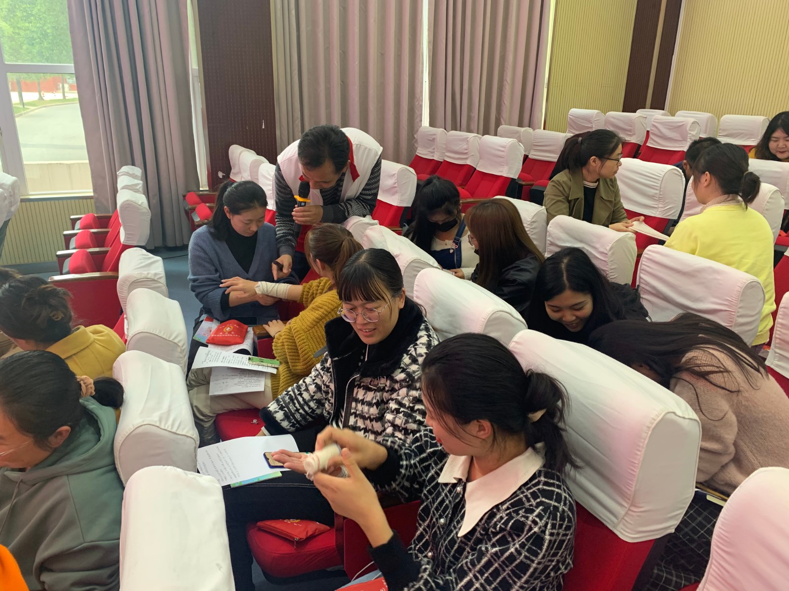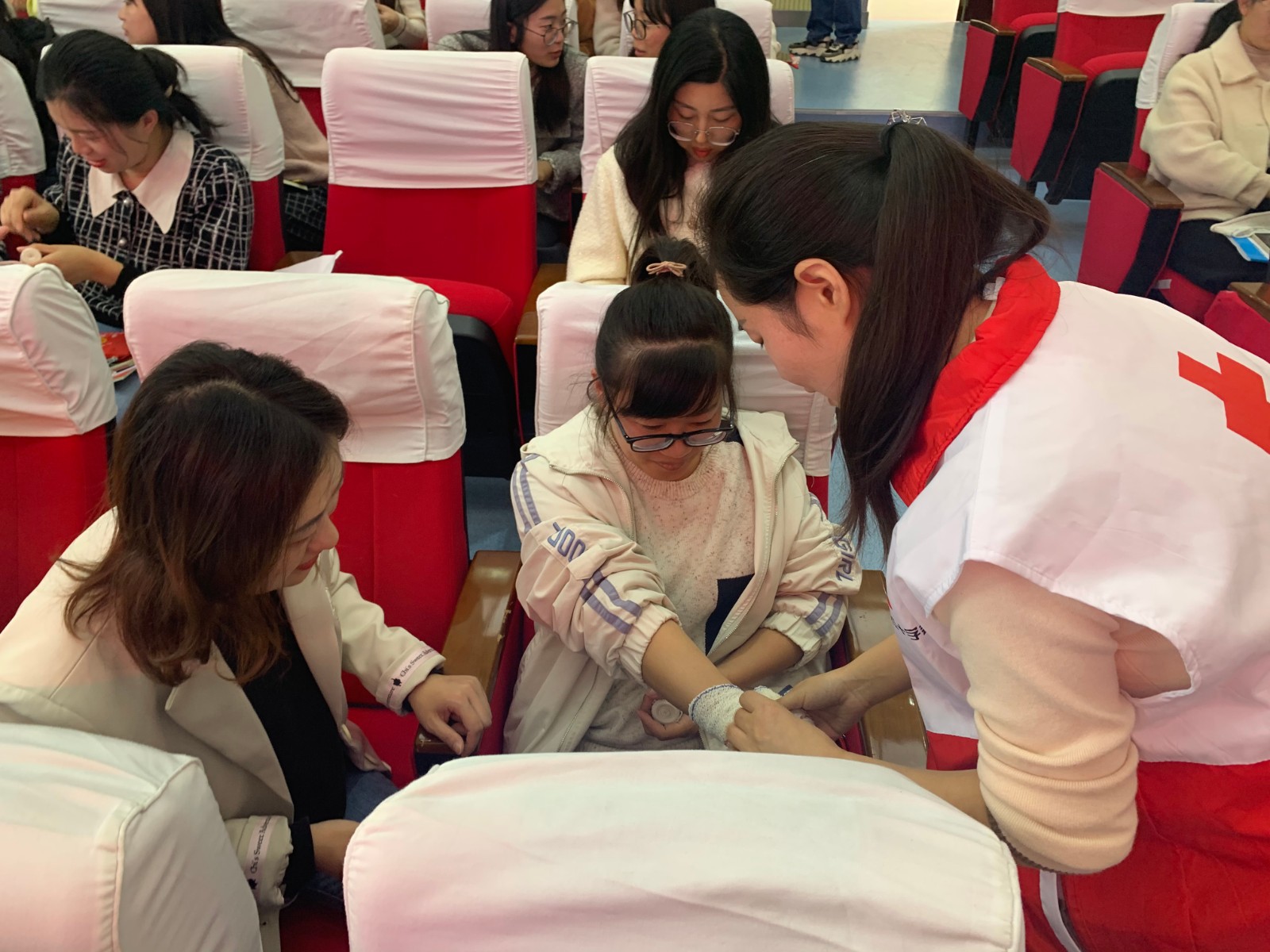 培训开始前,曹玲玲、杨森老师结合教师日常生活等实际情况,编排了授课方案。培训现场采取理论讲解、示范操作、师生互动、现场演练等多种形式,教授了心肺复苏术、自动体外除颤仪(AED)的使用、气道异物梗阻急救术等急救技能。此次培训内容丰富,讲解深入浅出,通俗易懂,收到了良好的效果,深受学员的欢迎。