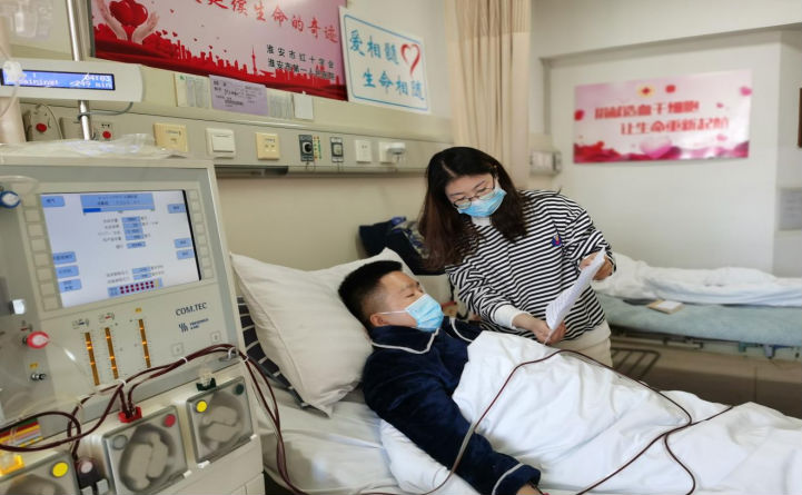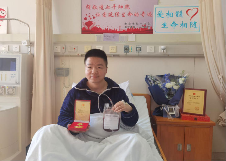 杨洋是一名90后医生,2013年9日参加工作以来,一直热心于红十字会公益事业,并多次主动参加无偿献血。2015年3月他参加了淮阴区红十字会组织的造血干细胞血样采集活动,成为了一名光荣的红十字造血干细胞志愿者。入库7年来,他一直期待来自红十字会的好消息,今年3月份终于等来了自己与四川的一名患者初配成功的缘分。在接到红会工作人员的电话后,他毫不犹豫的表示愿意捐献,并积极开始合理饮食、加强锻炼,为接下来的高配、体检顺利通过做好准备。在经过高配成功、体检合格后,杨洋于10月14日入住淮安市第一人民医院,注射了5天的动员剂,10月19日经过6个多小时的采集,成功地为患者捐献了275毫升“生命的种子”。