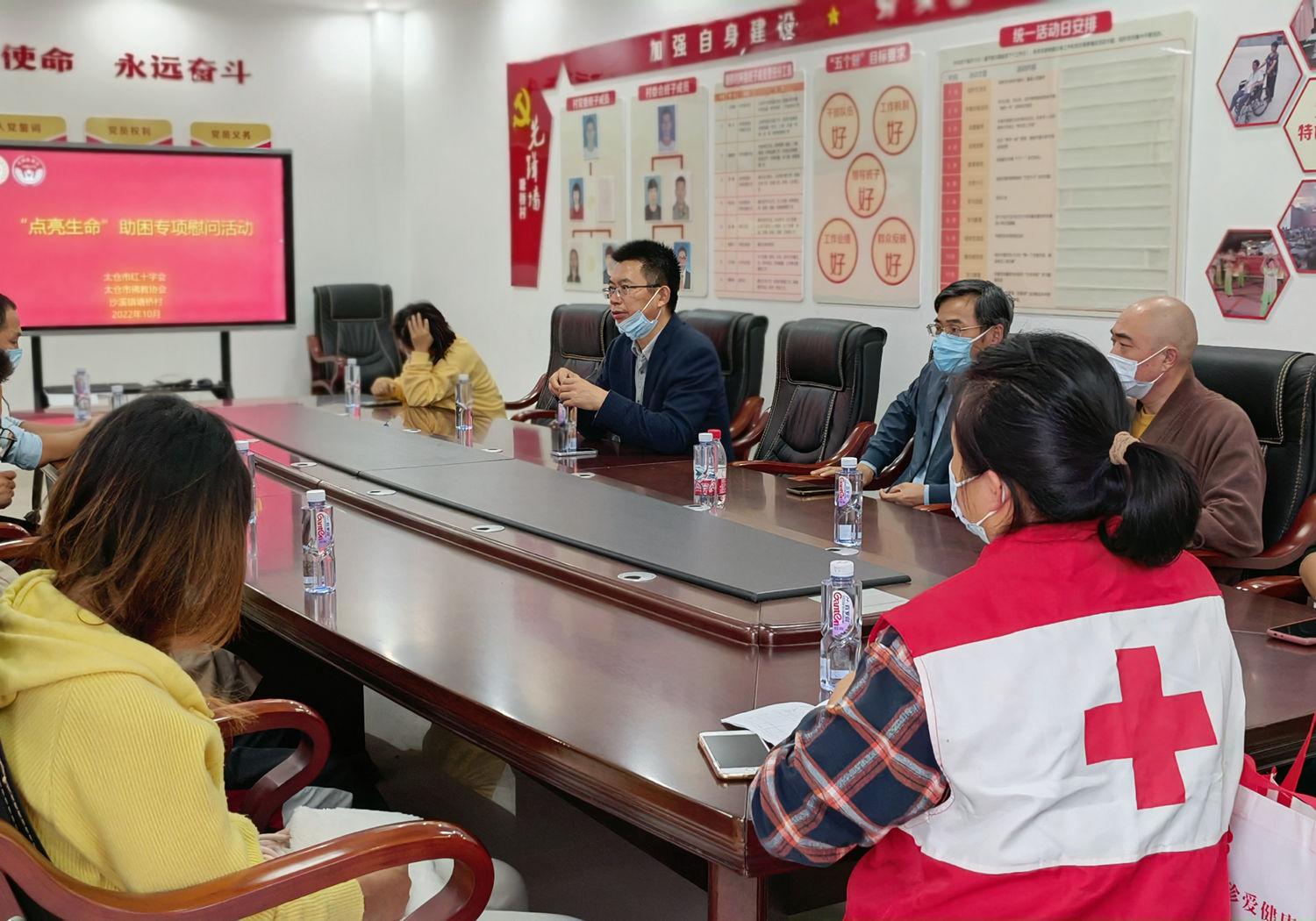 10月13日下午,市红十字会一行分别来到小虞和小刘家,向家长了解了家庭情况,详细询问了孩子的病情以及目前的医保报销政策和就诊情况,鼓励家长增强信心,细心护理,不断巩固治疗康复效果,争取让孩子早日治愈,正常快乐成长,随后送上 了慰问金和慰问物资。10月14日分别在城厢镇中区社区和沙溪镇塘桥村召开了患儿家长座谈会。会上,市红十字会常务副会长李云汉简要介绍了红十字救助工作,此次专项活动的内容,资金来源等情况,受助家长们纷纷表示感谢党委政府以及爱心单位对困难群众的关爱,家长们还相互间交流了体会,深有感触地说,孩子是一个家庭的希望,病魔无情但我们感受到了来自社会的“温度”,为战胜病魔也增添了一份信心。