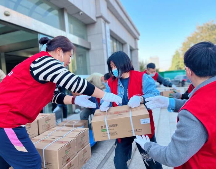 10月24日上午,扬子江药业集团向区红十字会捐赠了一批防疫物资,高港区红十字应急救援队志愿者参与物资搬运工作,服务保障疫情防控工作。
