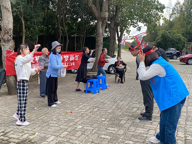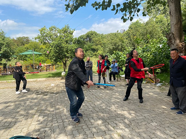 下车后,大家均纷纷放松心情、闲庭信步漫游于山水间,感受尚湖风景的独特魅力。难得出游,志愿者们做足准备,带了不少游戏道具。有些叔叔阿姨已经迫不及待地在空地上玩了起来。只听“哐”的一声,羽毛球颠球游戏开始了;有些叔叔阿姨玩起了趣味投篮、不倒森林等互动游戏,大家玩地非常尽兴。