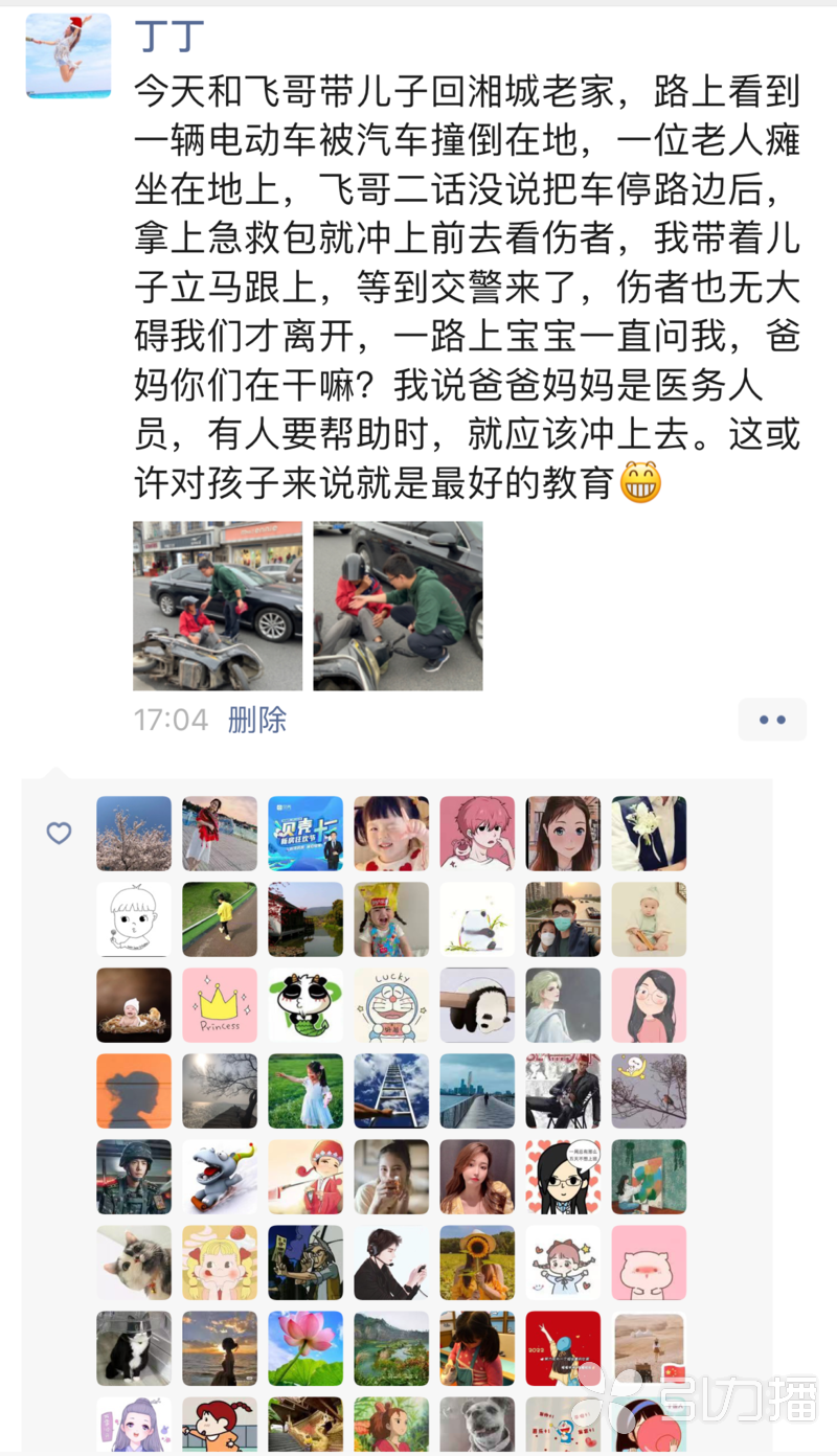 “爸爸妈妈是医务人员,有人需要帮助的时候就应该冲上去。这或许是对孩子最好的教育。”10月4日晚,苏大附儿院护士丁菊芳在朋友圈发了一条丈夫周振飞遇车祸施救的动态,瞬时得到众人点赞。
